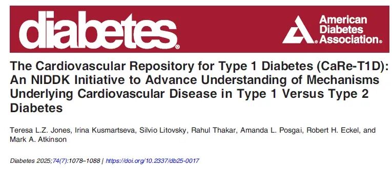 2025年7月,Diabetes杂志发表了一篇题为“The Cardiovascular Repository for Type 1 Diabetes (CaRe-T1D): An NIDDK Initiative to Advance Understanding of Mechanisms Underlying Cardiovascular Disease in Type 1 Versus Type 2 Diabetes”的文章,文中介绍的CaRe-T1D计划正是为解决这些问题而设,有望推动该领域研究。